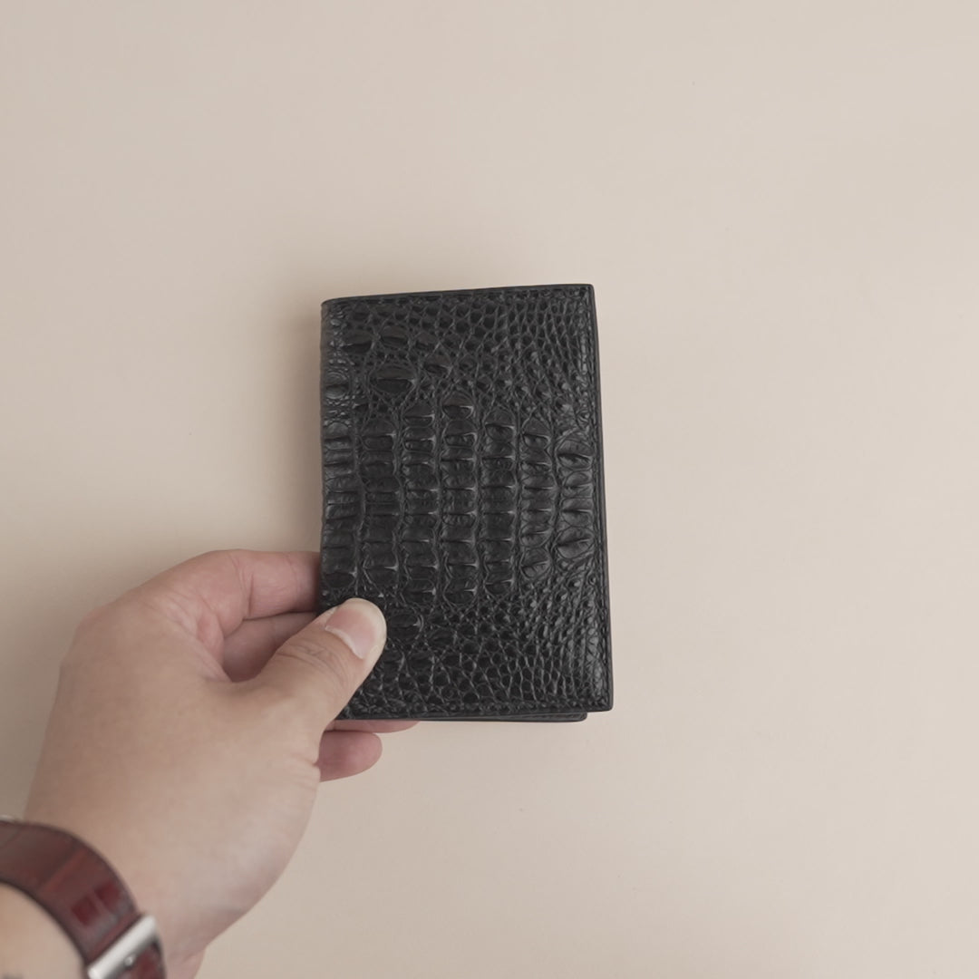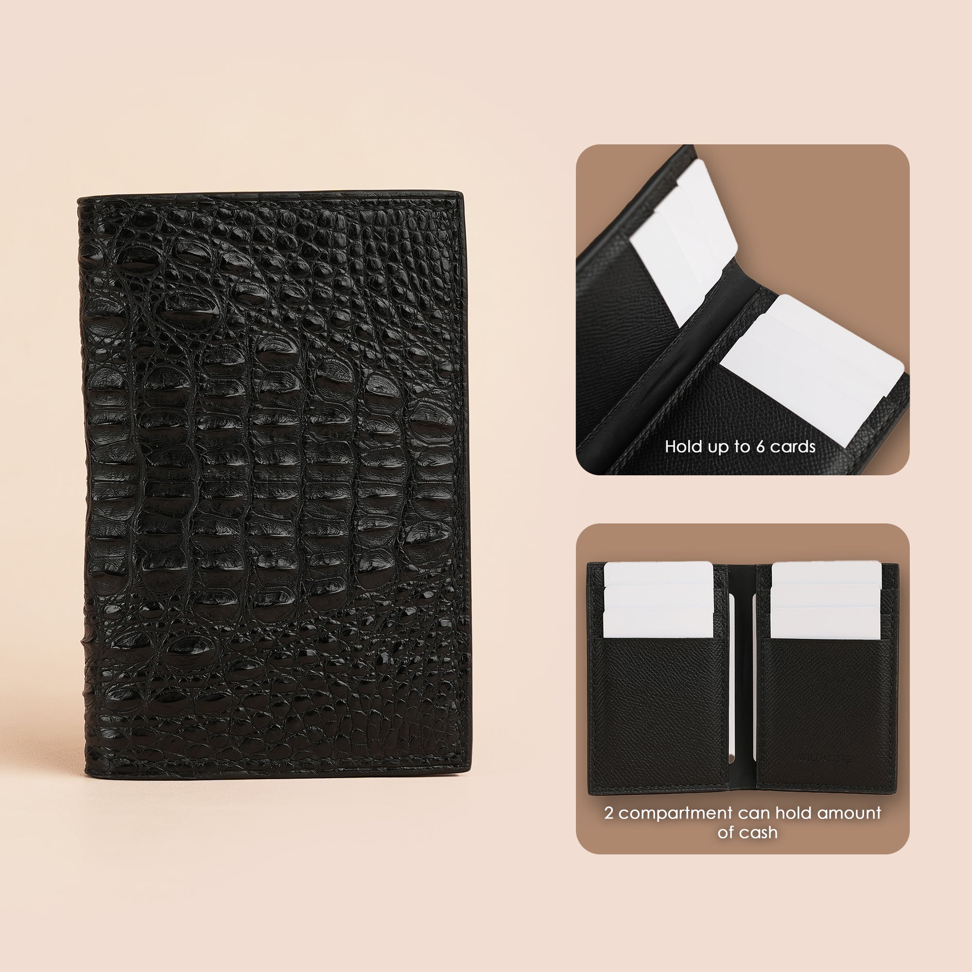 Elevate your essentials with the Black Double Hornback Bifold Wallet, a statement piece that combines exotic texture with modern function. Crafted from genuine double hornback alligator leather on the exterior and premium Epsom leather lining inside, this wallet delivers both refined elegance and enduring strength.