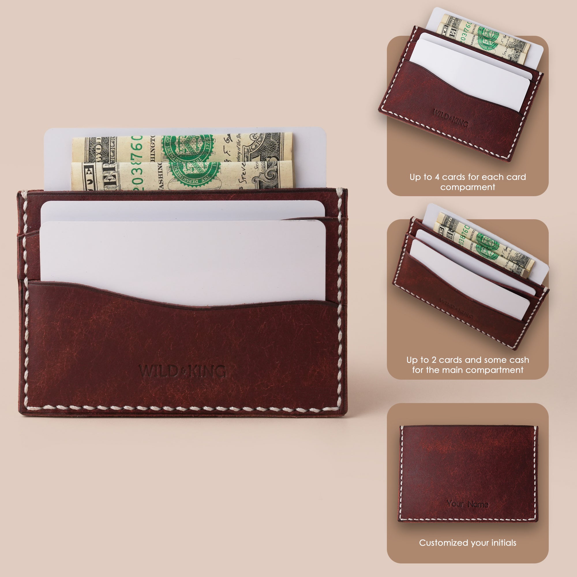 All wallets are sewn by hand, the thread is sewn in a cross stitch style on both sides around the edge of the wallet, making it sturdy and bringing high aesthetics to the card holder.