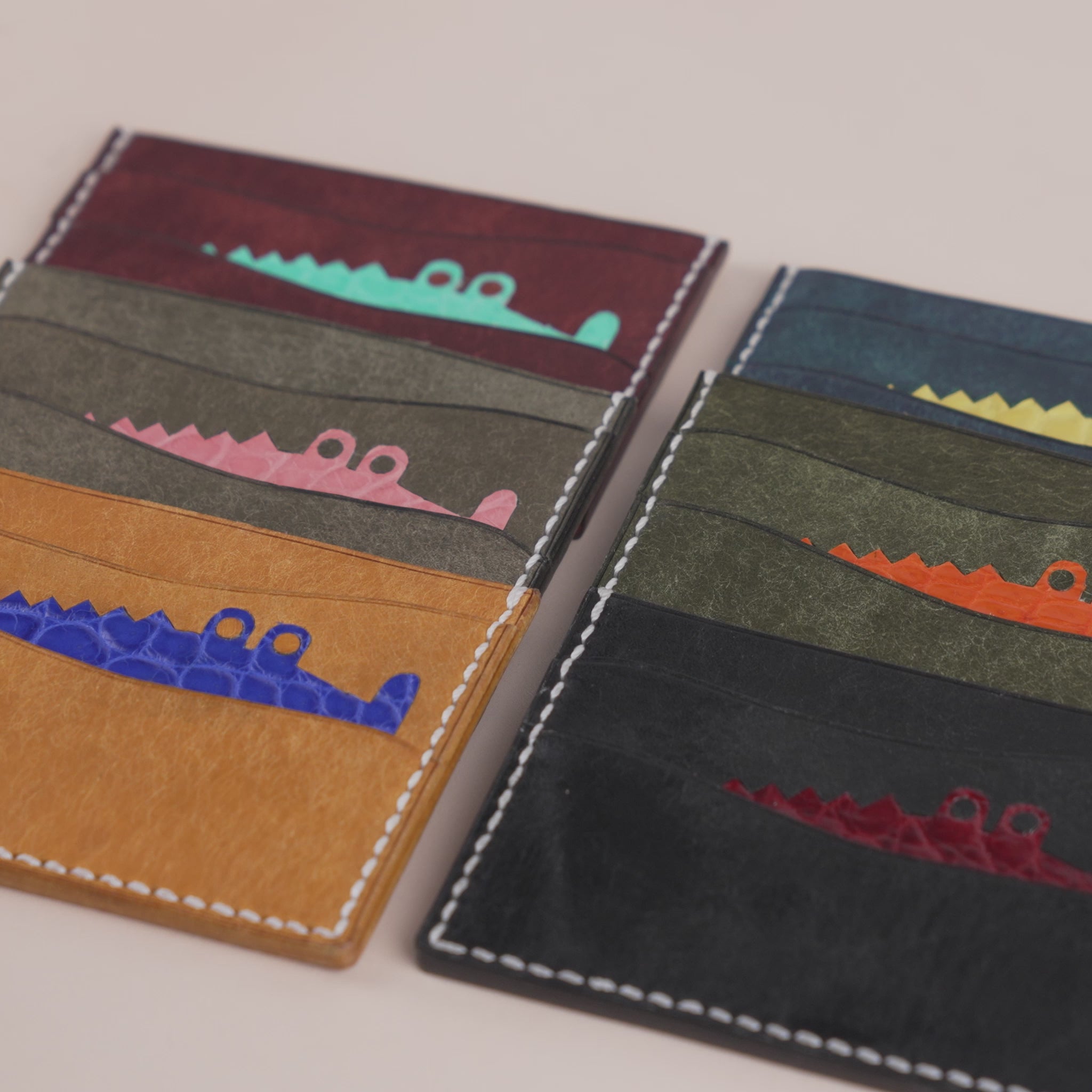 Add a touch of fun to your essentials with our Card Holder Alligator Stupid. Crafted from high quality Pueblo leather, Unique Design The standout feature is the whimsical image of a 'stupid Alligator' crafted from Alligator leather, adding a unique and playful element to the card holder