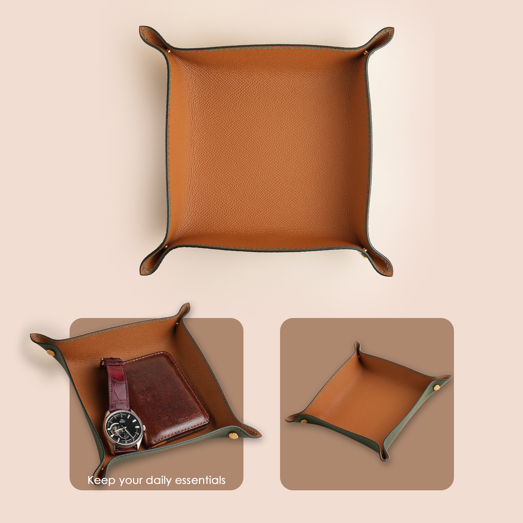 Crafted from exquisite epsom leather, this luxury tray is the perfect blend of elegance and practicality. Designed to keep your daily essentials, wallet, keys, watch, or accessories, beautifully organized, it adds a refined touch to your workspace, bedside, or entryway.