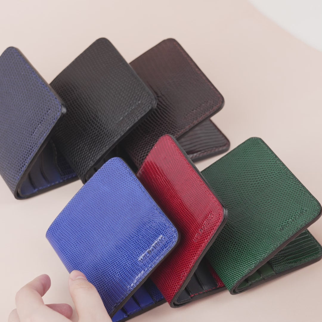 A premium, compact wallet crafted from exquisite lizard leather, perfect for those who need both style and functionality. This bifold wallet features 6 card compartments and 1 spacious money compartment, allowing you to easily store and organize all your essentials. The unique texture of the lizard leather adds a luxurious touch, while the design maximizes storage capacity without compromising on style. Ideal for holding multiple cards and cash securely, this wallet is both a practical accessory and a statement of sophistication