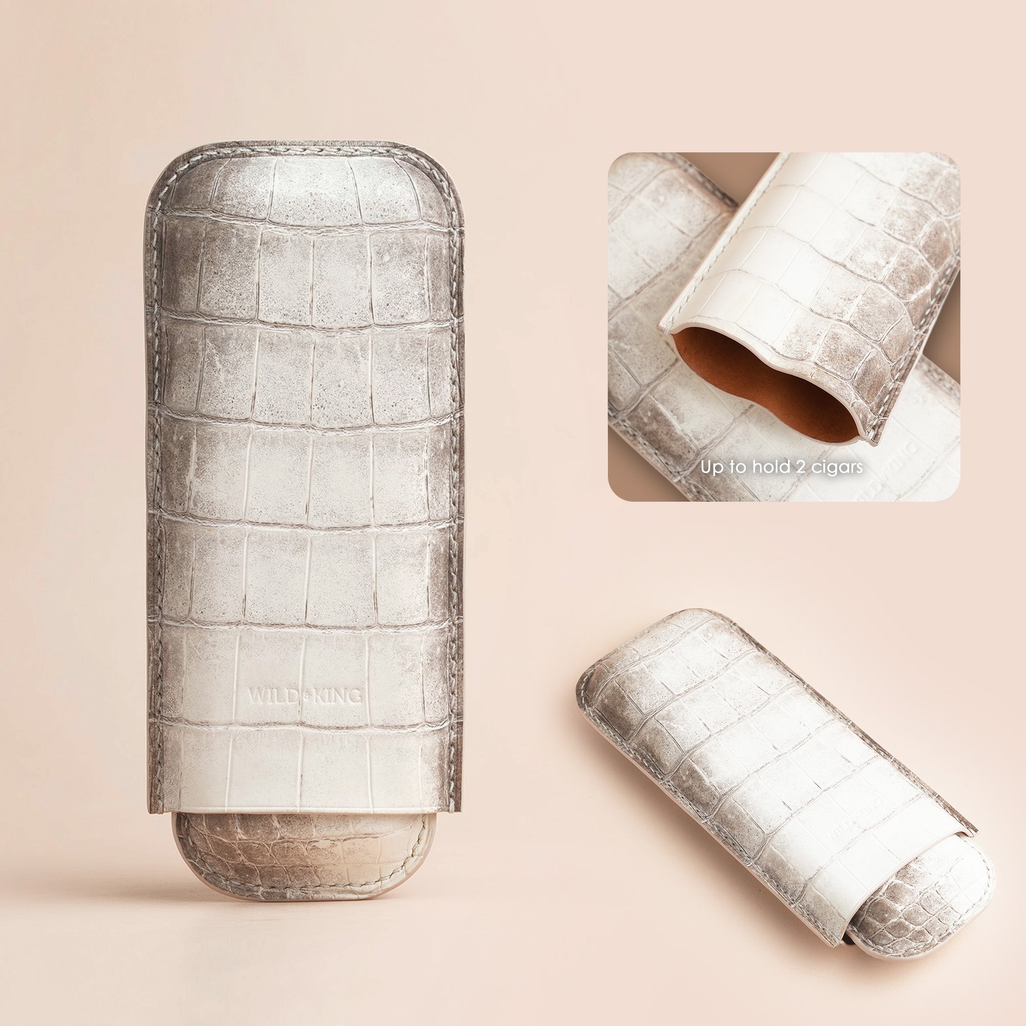 Himalayan Leather Cigarettes Case Holder is crafted from luxurious himalayan leather in a ivory tones. Designed to hold up to 2 cigars, this elegant case offers both protection and sophistication for your essentials. A bold accessory for those who appreciate fine craftsmanship and standout style.
