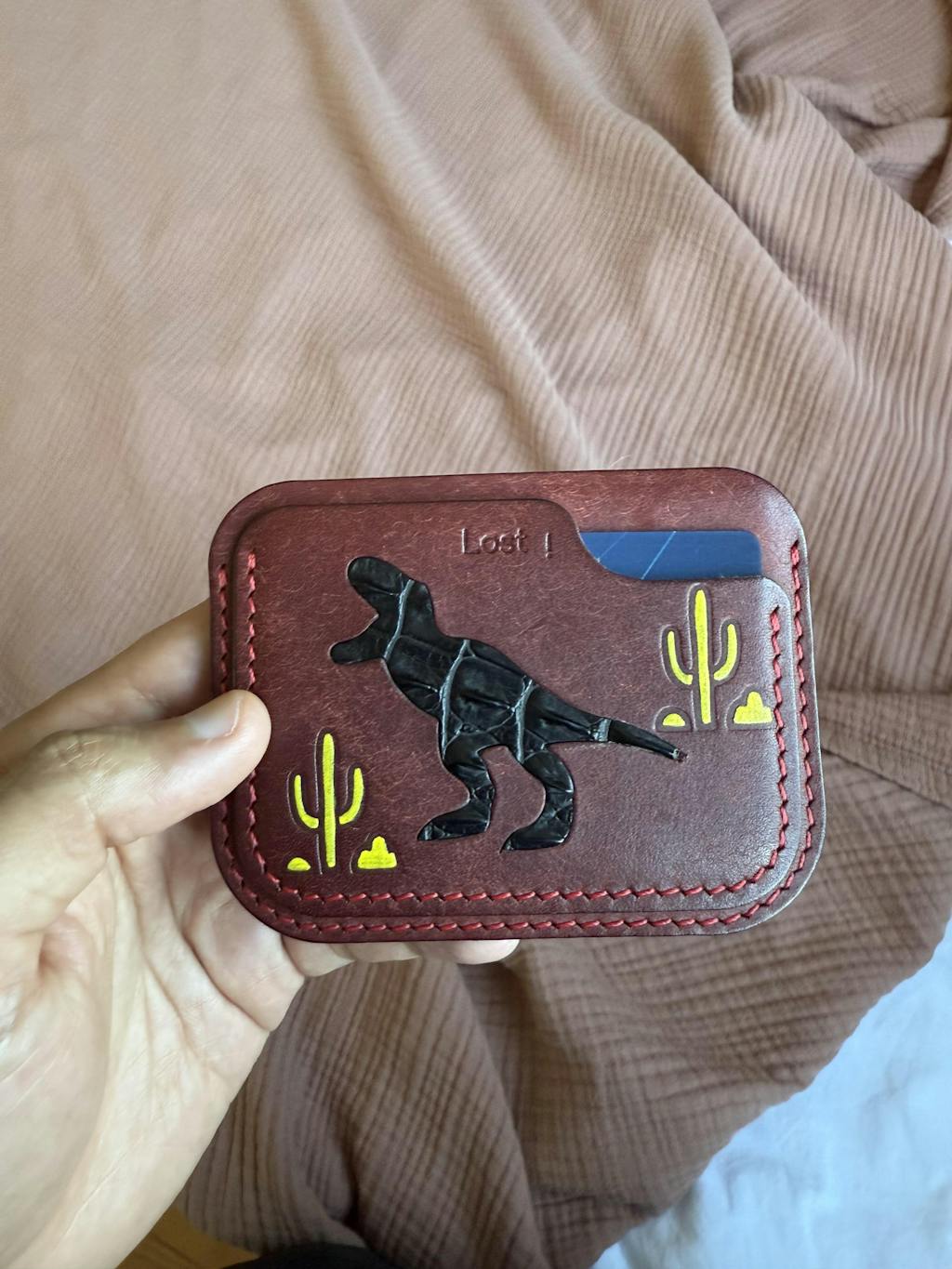 - 1 x Minimalist Burgundy Pueblo Leather Card Holder - Dinosaur Design