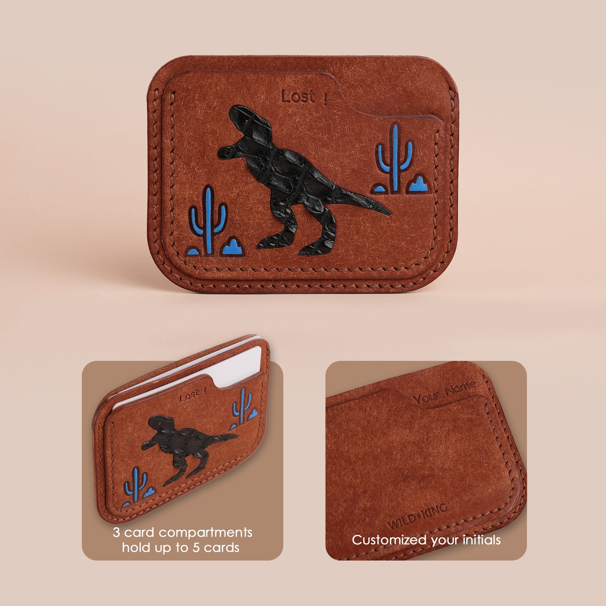 Minimalist Pueblo Leather Card Holder "Dinosaur Design" - Compact & Functional