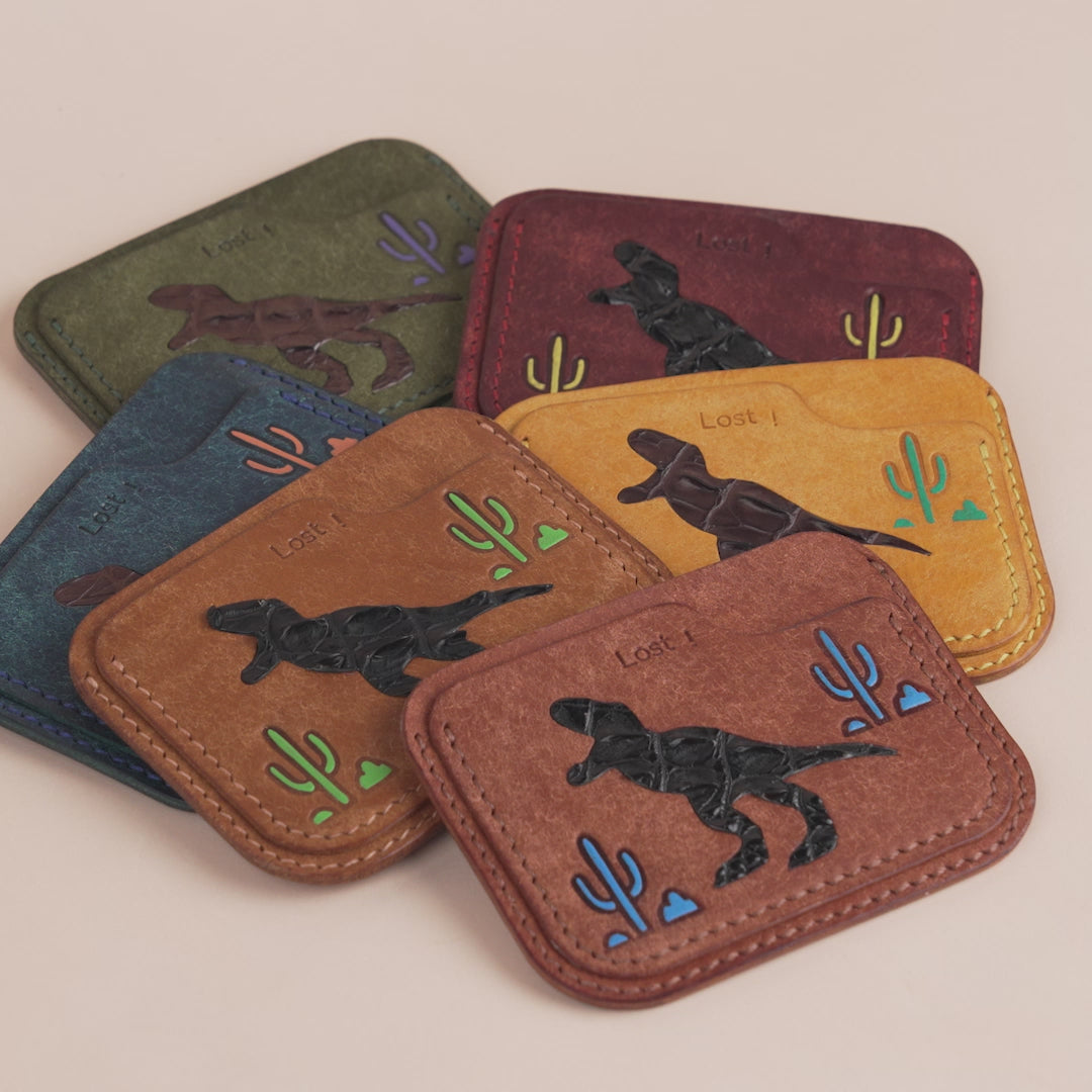 Minimalist Cognac Pueblo Leather Card Holder - Dinosaur Design