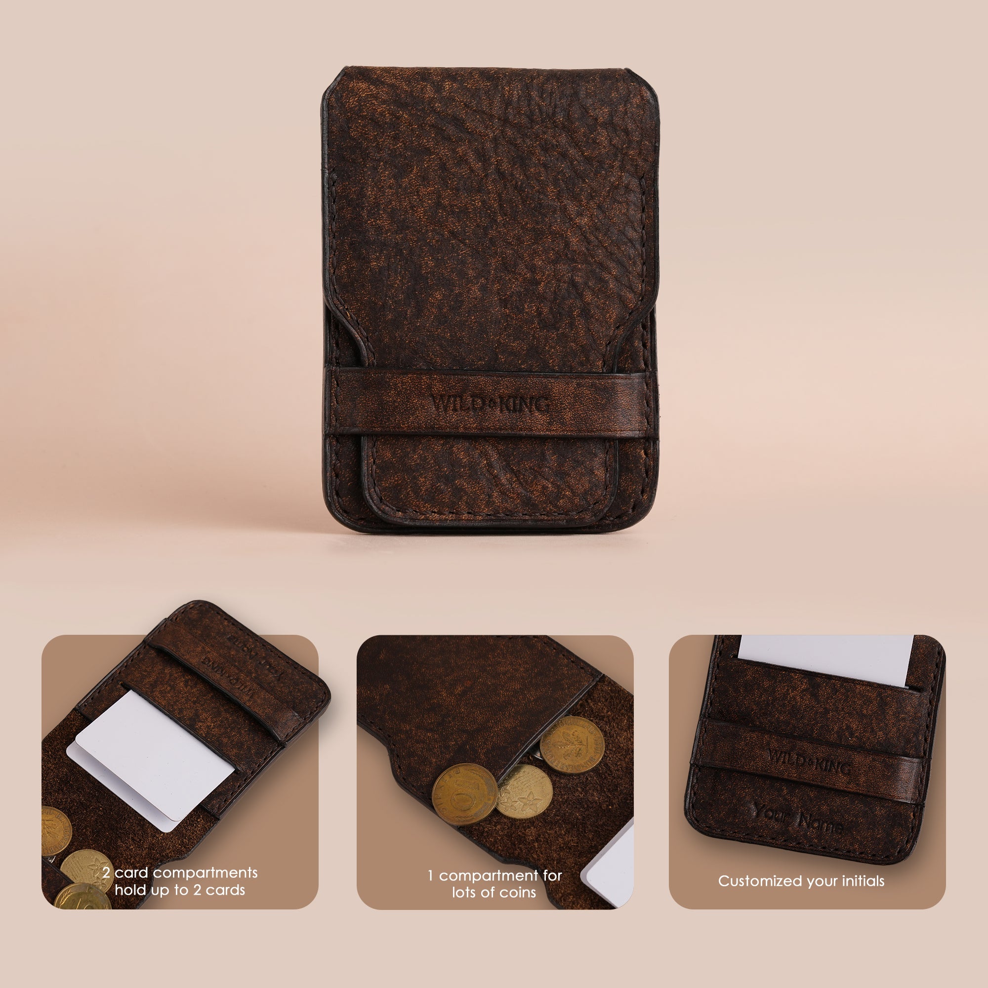- Capacity: ≈ 2 card compartments hold up to 2 cards and 1 compartment for lots of coins