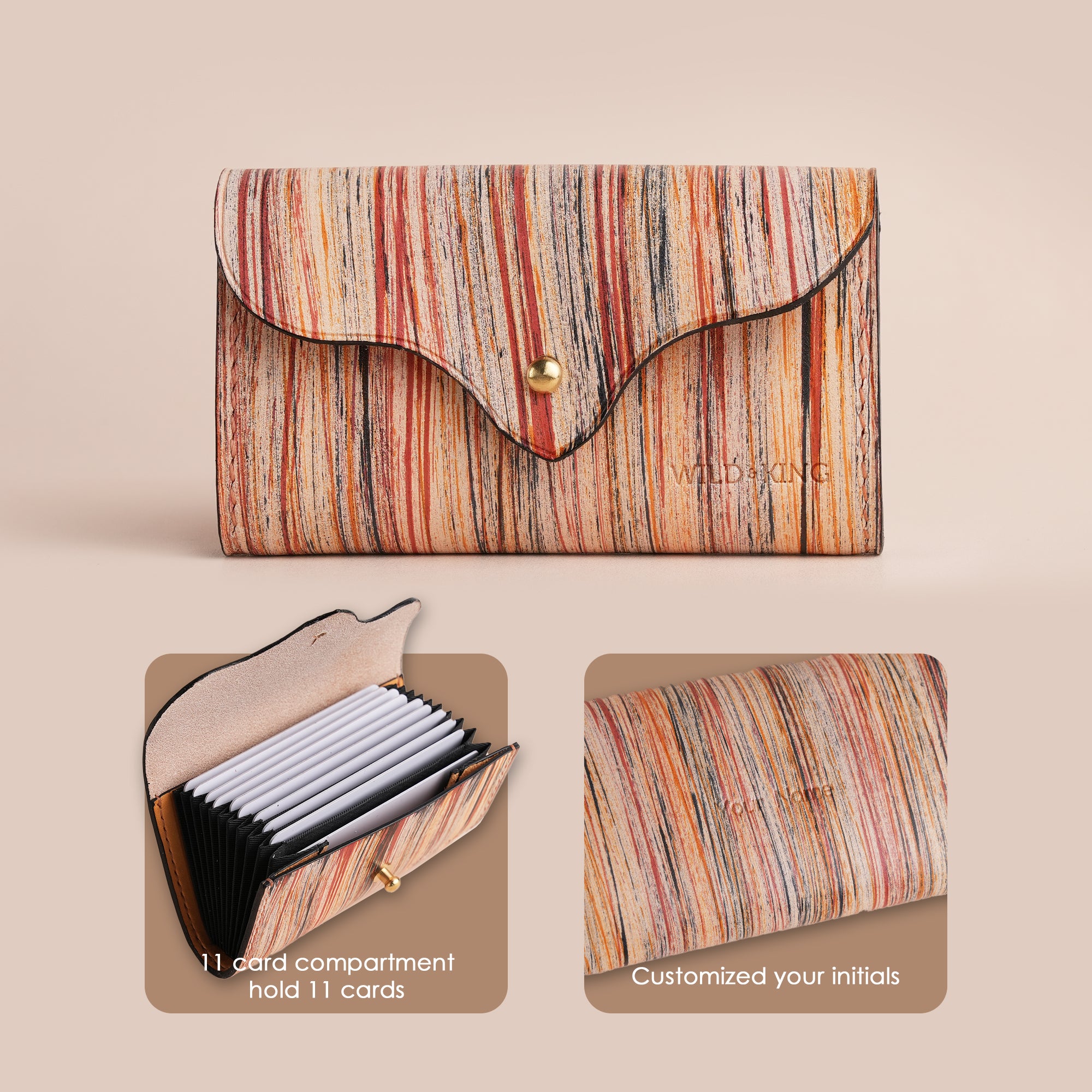 Made from high quality vegetable tanned leather with a unique natural streaks pattern. Featuring 11 compartments, it securely holds up to 11 cards, offering ample storage in a compact design. Perfect for those who appreciate craftsmanship and elegance, this wallet ensures your essentials are organized while making a bold fashion statement.