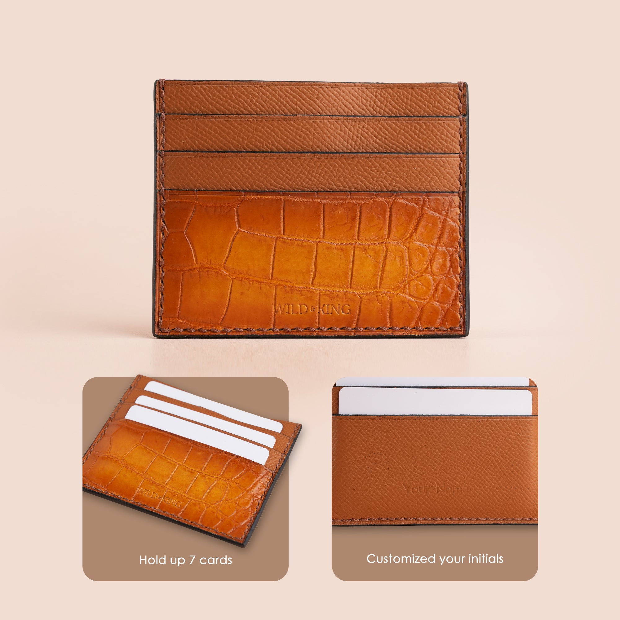 - 1 x Orange Alligator Leather Card Holder - Patina Finish