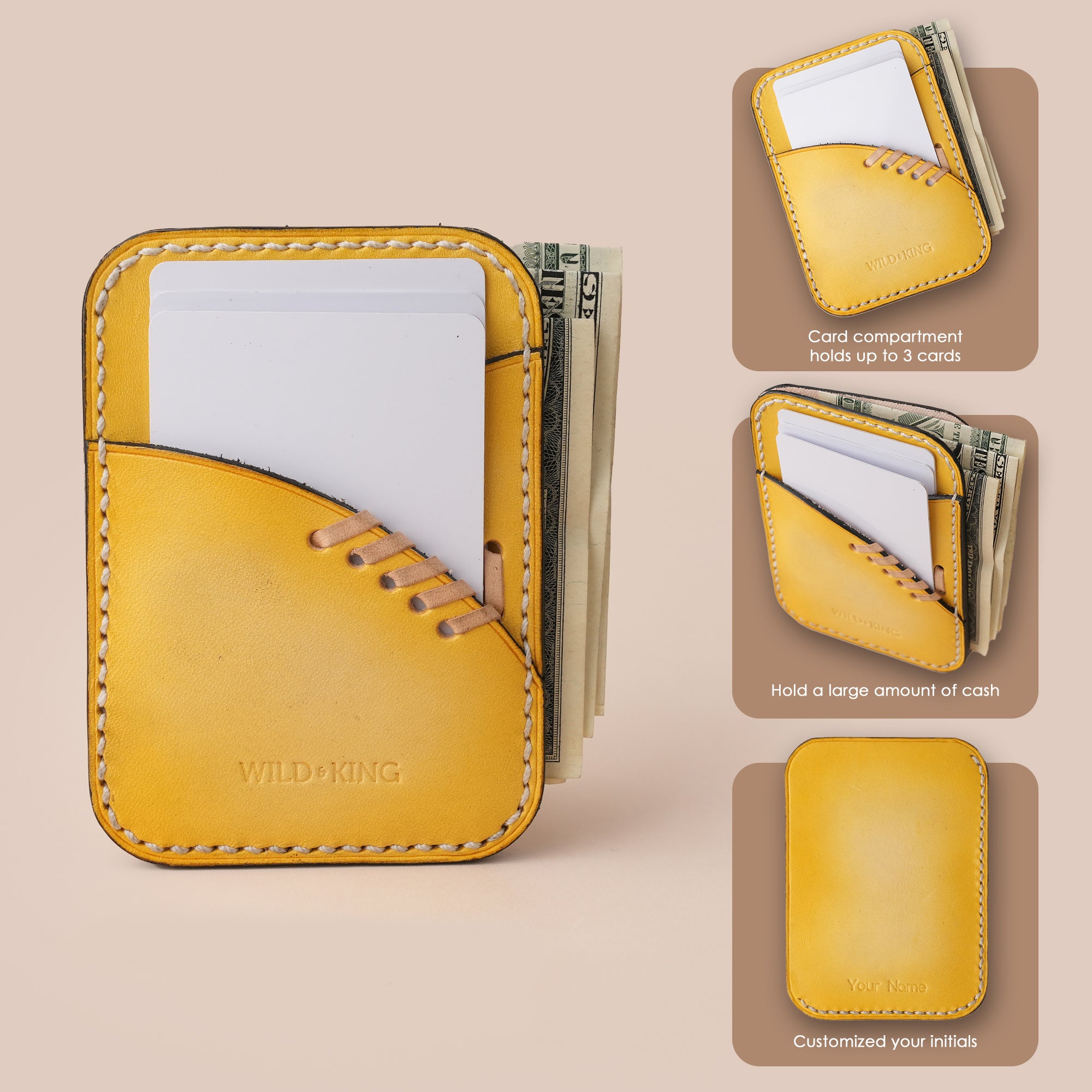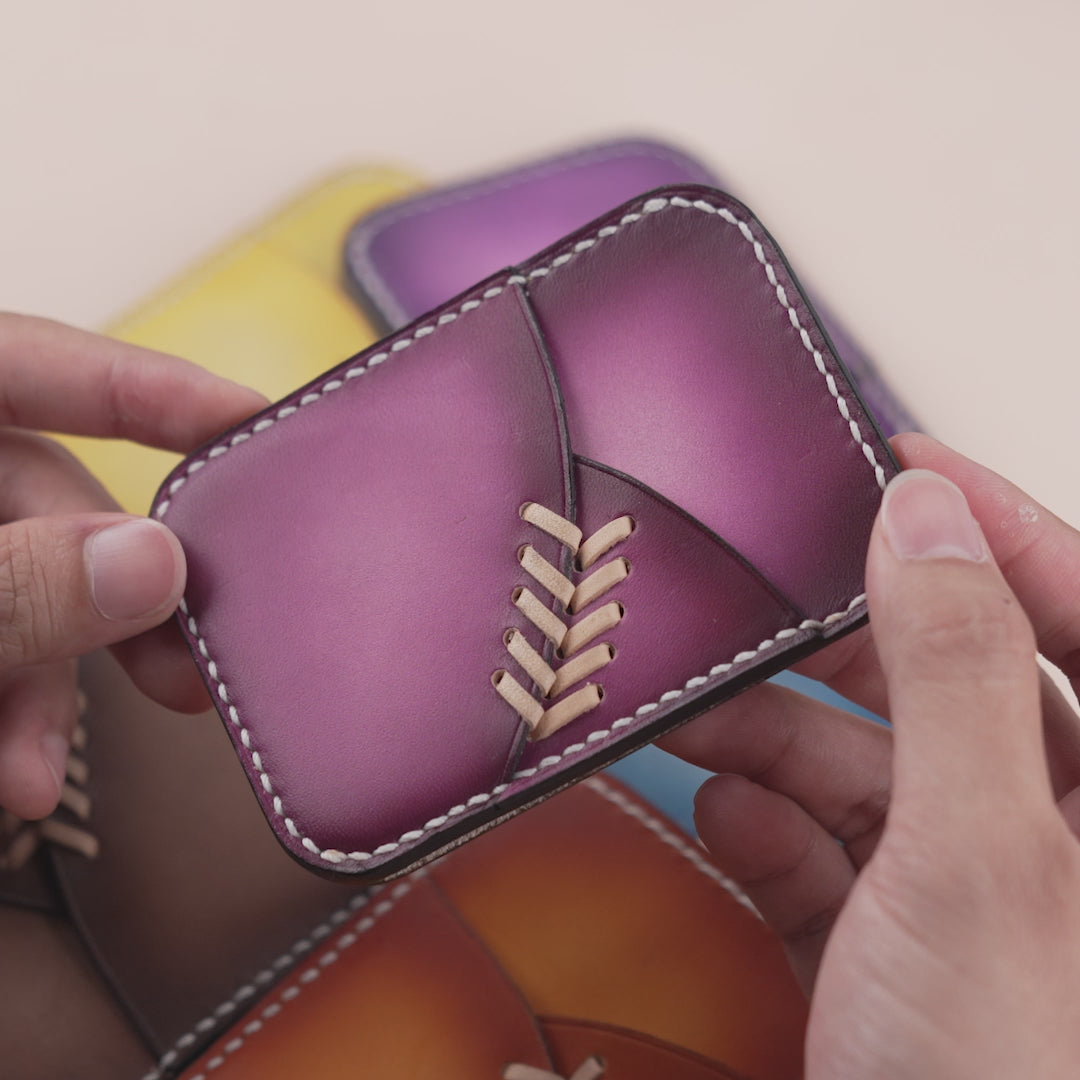 All wallets are sewn by hand, the thread is sewn in a cross stitch style on both sides around the edge of the wallet, making it sturdy and bringing high aesthetics to the card holder.