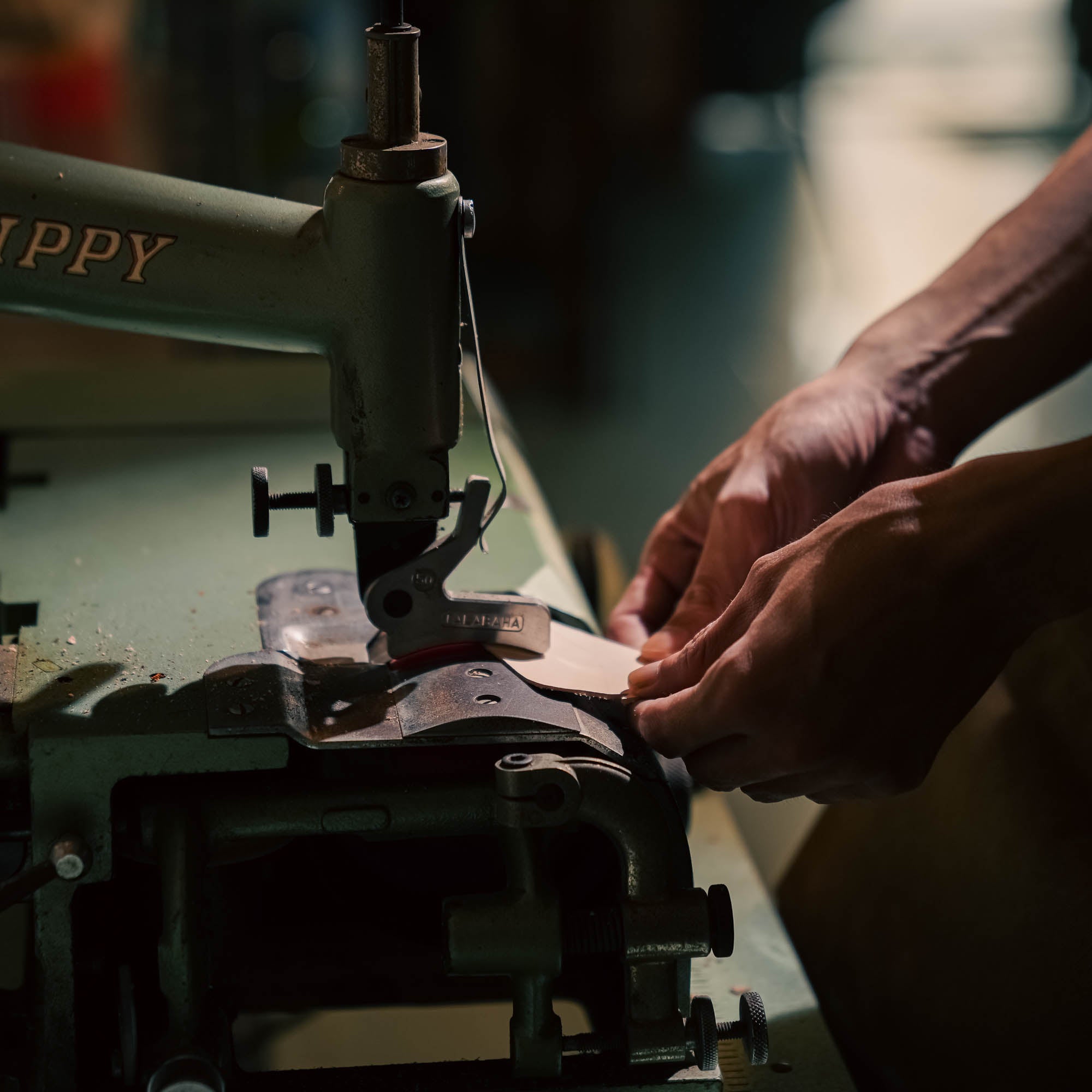 Using a skiving machine is a precise technique that thins the leather edges, allowing artisans to control thickness for optimal tapering in areas needing stitching or folding.