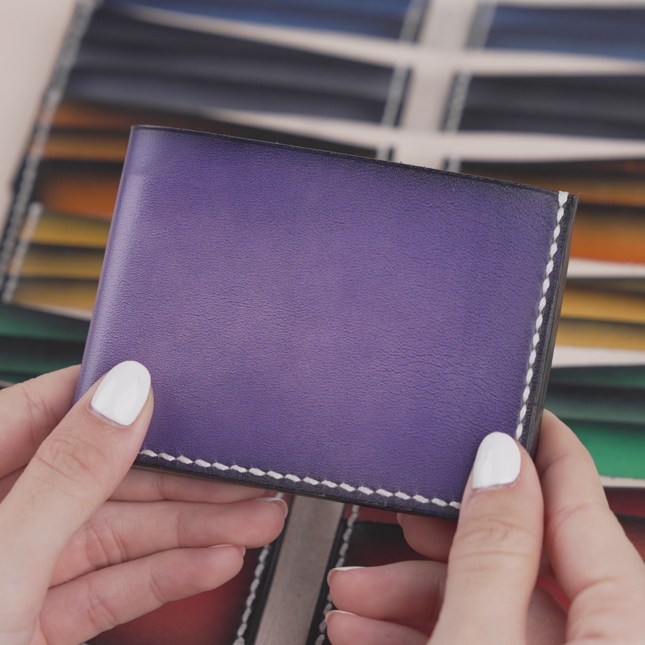Purple Leather Bifold Wallet Mens - Patina Finish