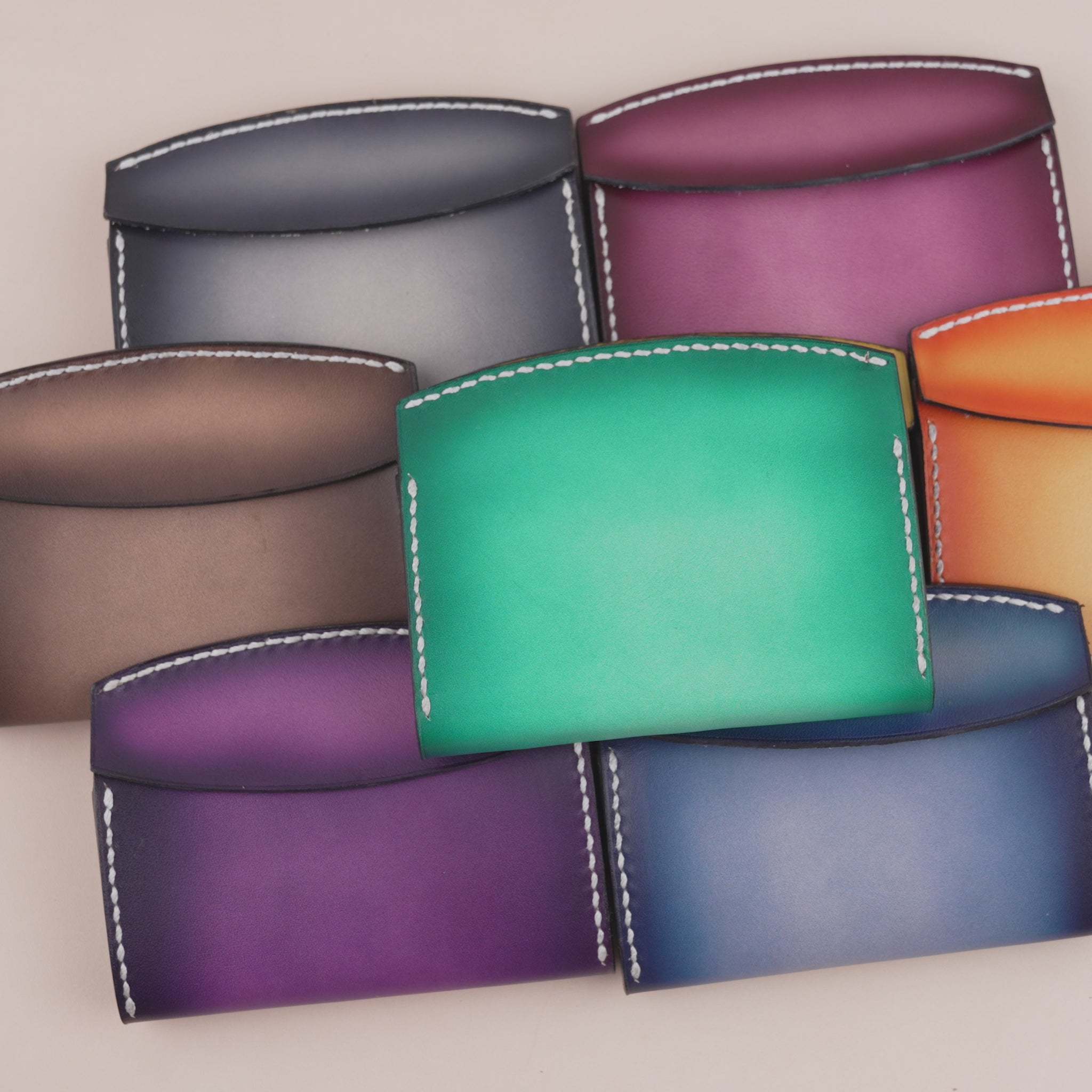 - 1 x Purple Leather Card Pouch - Patina Finish