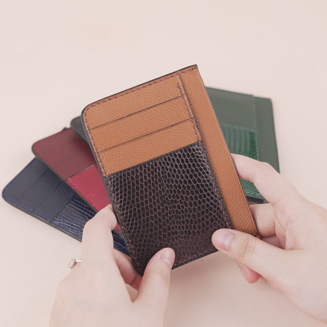 Minimalist Epsom mix Lizard Leather Card Holder - Elegance Meets Functionality