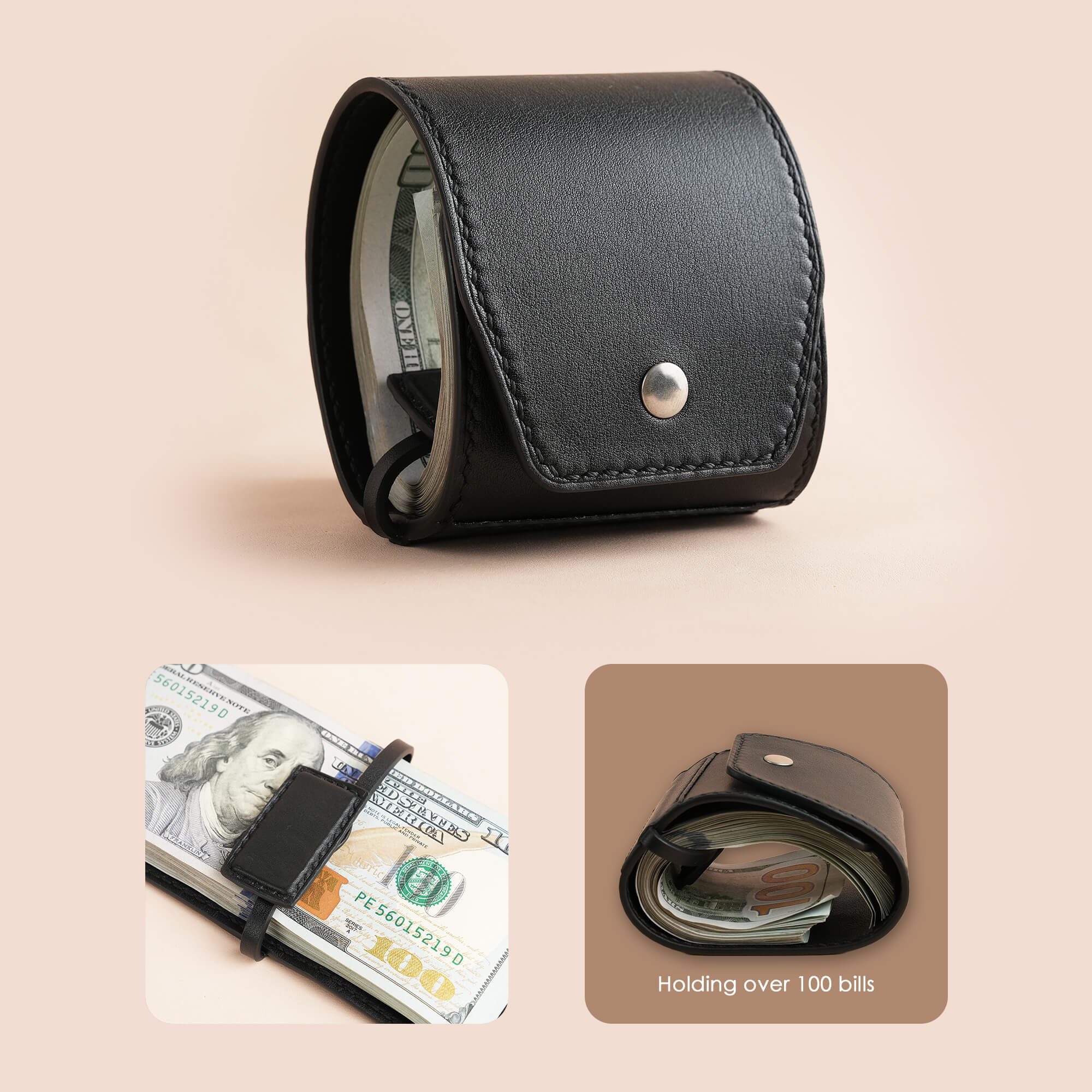 Meet the Swift Leather Wrap Wallet, the ultimate minimalist solution for those who carry cash in style. Crafted from premium Swift leather, this sleek wrap around design offers a sophisticated look and luxurious feel, perfect for the modern gentleman.